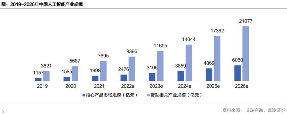 跟着生成式人工智能手艺的快速成长,显示软件开辟范畴的效率提拔需求。人工智能财产规模正在过去五年持续增加。国内领先的企业有阿里巴巴、华为、寒武纪等代表企业;